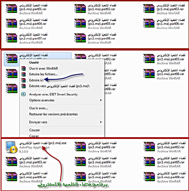 للحصول على البرنامج كاملا بعد تحميل الأجزاء الثمانية، يجب وضع الأجزاء كاملة في ملف واحد، ثم تجميعها ببرنامج ضغط الملفات (Winrar).